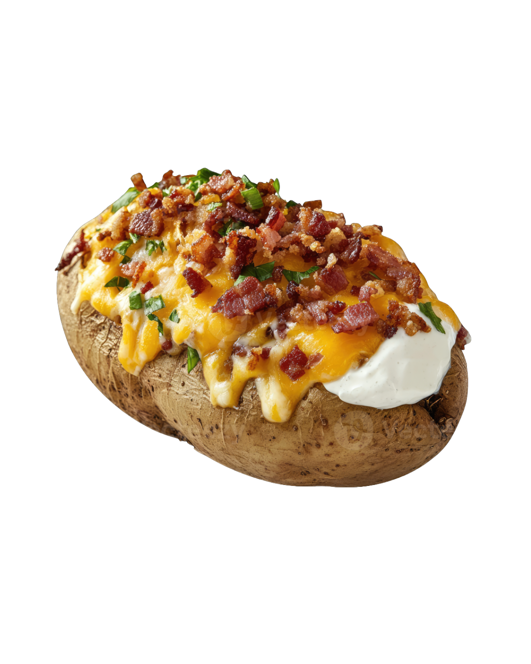Get in touchGolden, crispy on the outside and fluffy on the inside—our roasted potatoes are taken to the next level when fully loaded with all the fixings. Smothered in melted cheese, topped with sour cream, crispy bacon bits, green onions, and a sprinkle of spice, each potato is a hearty meal all on its own.